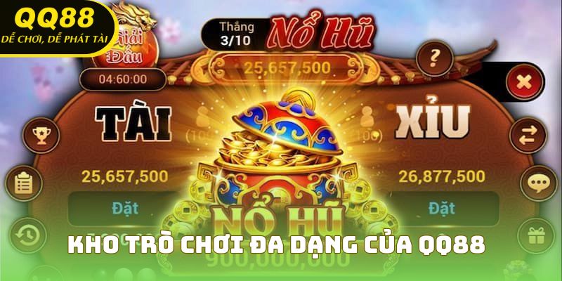 Nổ hũ QQ88 là nơi quy tụ hàng trăm tựa game slot từ các nhà cung cấp nổi tiếng quốc tế, tích hợp nhiều tính năng đặc biệt như vòng quay miễn phí, hệ số nhân thưởng và jackpot “khủng”. Nếu bạn đang tìm một trò chơi vừa mang tính giải trí cao, vừa có thể mang lại cơ hội “đổi đời” thì chuyên mục nổ hũ tại QQ88 là lựa chọn không thể bỏ qua.